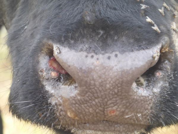 Tổn thương ở vùng mũi gia súc bị bệnh. Ảnh: Cục Thú y