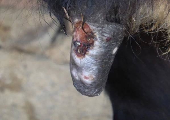 Tổn thương và loét ở núm vú bò bị bệnh. Ảnh: Cục Thú y