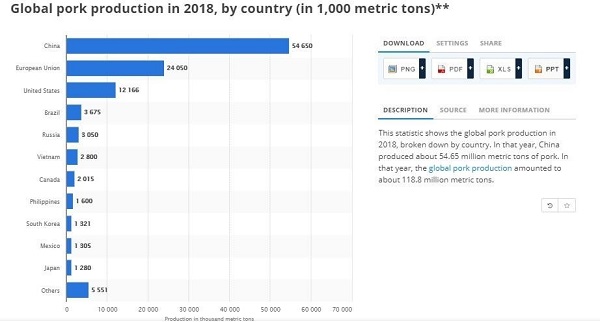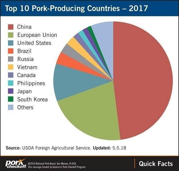Năm 2018, FAO dự đoán Việt Nam tiếp tục chiếm vị trí thứ 6 toàn cầu về sản lượng thịt lợn