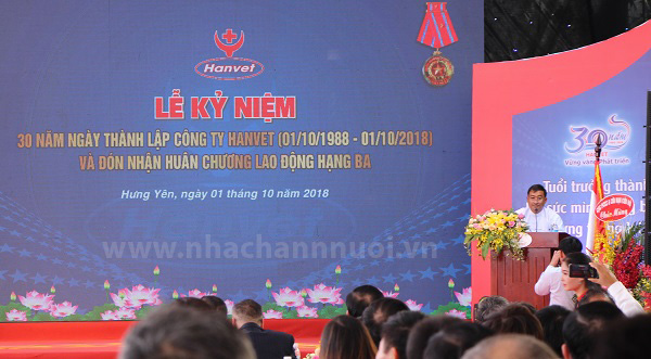 Phát biểu tại lễ kỷ niệm, ông Hà Công Tuấn, Thứ trưởng Bộ NN&PTNT, ghi nhận và đánh giá cao sự đóng góp của công ty HANVET với sự nghiệp phát triển nông nghiệp, nông thôn. Thứ trưởng cũng mong muốn công ty phát huy thành quả đạt được và đẩy mạnh hơn nữa thành tựu khoa học công nghệ góp phần thúc đẩy mạnh mẽ quá trình tái cơ cấu ngành nông nghiệp bền vững; phấn đấu đưa Hanvet là công ty hàng đầu về ngành sản xuất thú y, vắc xin và sinh phẩm của Việt Nam và vươn ra thế giới…