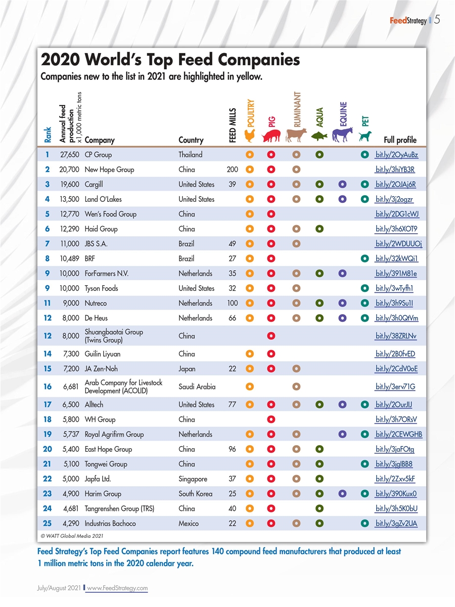 Top 5 doanh nghiệp sản xuất thức ăn chăn nuôi lớn nhất thế giới: