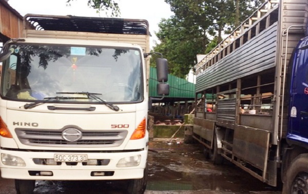 Các phương tiện dùng để chuyên chở heo đi tiêu thụ (Ảnh: CTV)