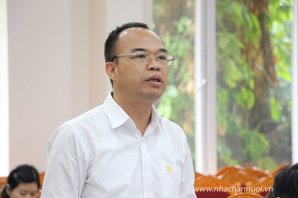 Ông Nguyễn Xuân Dương trình bày báo cáo về thực trạng và giải pháp phát triển chăn nuôi trong tình hình mới (Ảnh: Phạm Huệ)