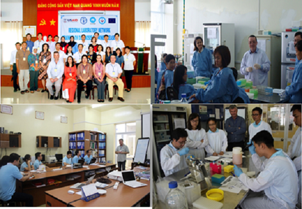 Một số hình ảnh liên quan đến quá trình thảo luận, tập huấn chuyển giao kỹ thuật và thực hiện xét nghiệm bệnh dịch tả lợn Châu Phi.