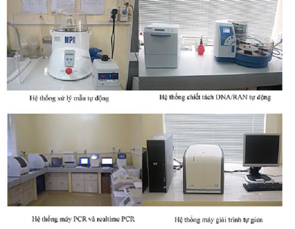 Hệ thống trang thiết bị phục vụ xét nghiệm bằng kỹ thuật sinh học phân tử (PCR, realtime PCR và giải trình tự gien).
