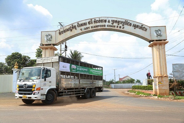 Xe xuất khẩu heo giống GREENFEED tại khu vực cửa khẩu Việt Nam - Campuchia.