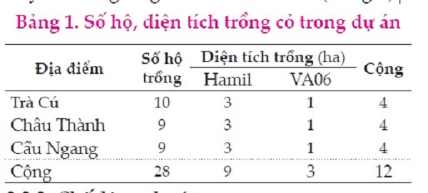 Giống cỏ Hamil và cỏ VA06 do Trung tâm Nghiên cứu và Phát triển Chăn nuôi Gia súc lớn nhân giống và sản xuất, được thí nghiệm tại 3 huyện: Trà Cú, Châu Thành, Cầu Ngang, tỉnh Trà Vinh, từ tháng 11/2016 đến tháng 10/2020.