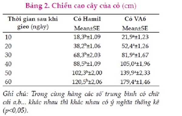 3.1. Khả năng sinh trưởng, phát triển của giống cỏ Hamil và cỏ VA06 tại Trà Vinh