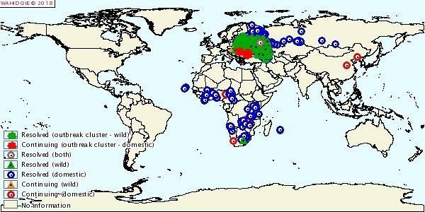 Bản đồ phân bố bệnh dịch tả lợn châu Phi