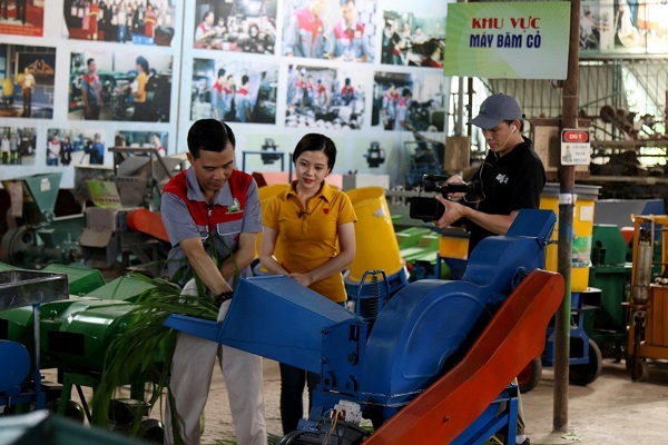 Anh Châu giới thiệu chiếc máy băm cỏ cho bò 3AK4w trong chương trình “Nông dân khởi nghiệp”