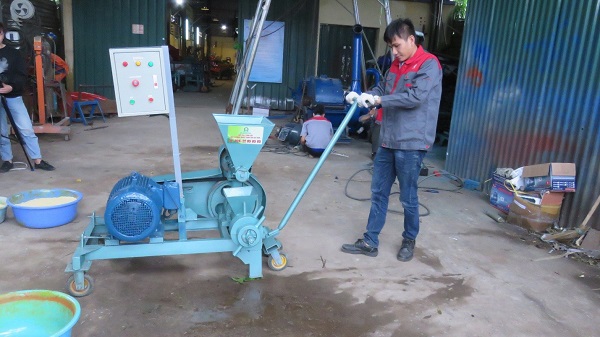 Trong chăn nuôi, giá thành thức ăn luôn là yếu tố ảnh hưởng không nhỏ đến lợi nhuận. Để giúp các hộ gia đình, trạng trại nuôi trồng thủy hải sản không còn phụ thuộc vào nguồn cám viên đắt đỏ bên ngoài, nhà sáng chế Nguyễn Hải Châu đã nghiên cứu và phân phối ra thị trường 3 loại máy ép cám viên nổi. Mỗi chiếc máy sẽ được lắp đặt công suất khác nhau nhằm đáp ứng với từng quy mô chăm sóc.