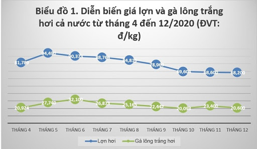 Trong năm 2020, giá lợn hơi (giá công ty) tại miền Bắc bình quân là 74.900 đồng/kg, tăng 56% (cao hơn 26.900 đồng/kg) so với năm 2019. Tại miền Nam, giá lợn hơi bình quân 76.100 đồng/kg, tăng 58,2% so với năm 2019 (cao hơn 28.000 đồng/kg).