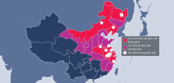 Tính đến ngày 18/9, Trung Quốc đã báo cáo 20 trường hợp bùng phát dịch ASF trên 7 tỉnh trực thuộc trung ương. Dựa theo sự phân tán trên diện rộng của các trường hợp được thống kê đến thời điểm này, dường như dịch bệnh vẫn chưa được kiểm soát, và những ổ dịch khác dự kiến sẽ tiếp tục được báo cáo.