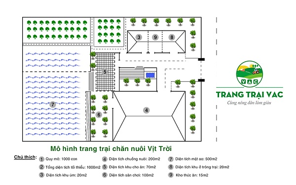 Mô hình trang trại chăn nuôi vịt trời khép kín.
