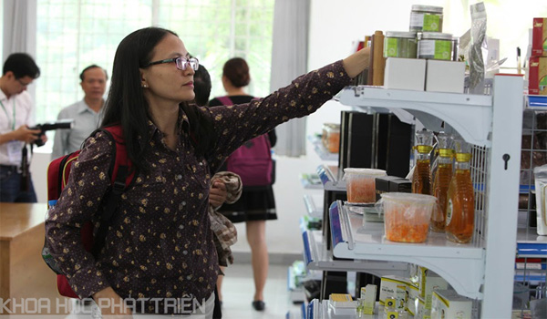 Đại biểu tham quan phòng trưng bày, giới thiệu sản phẩm nông nghiệp công nghệ cao Ảnh: MT