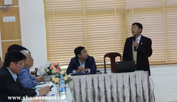 TS Chu Mạnh Thắng (Trưởng phòng Khoa học, Đào tạo và Hợp tác quốc tế, tổng thư kí Hội đồng Khoa học & Công nghệ Viện Chăn nuôi) trình bày tại Hội nghị
