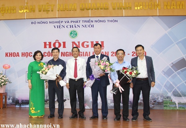 Lãnh đạo Viện Chăn nuôi tặng hoa cảm ơn các nhà tài trợ cho Hội nghị