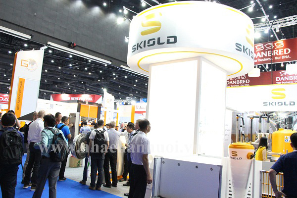 Gian hàng trưng bày máy móc thiết bị phục vụ ngành chăn nuôi của Công ty SKIOLD (Đan Mạch) tại VIV châu Á 2019.